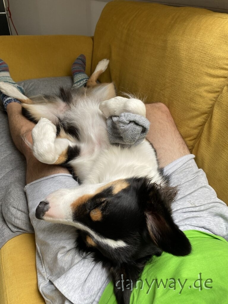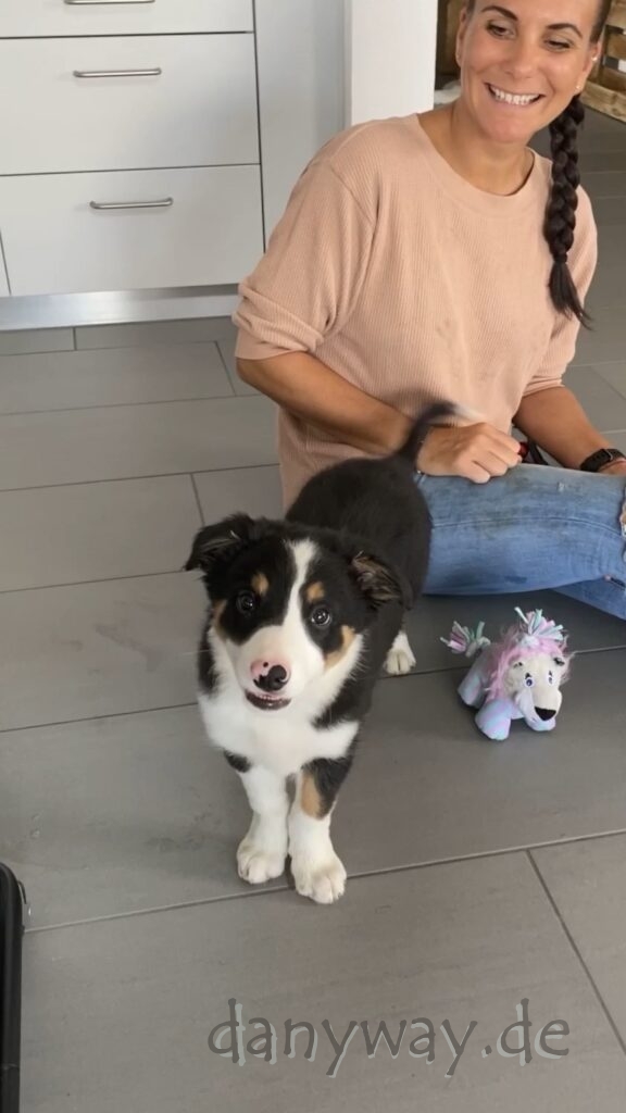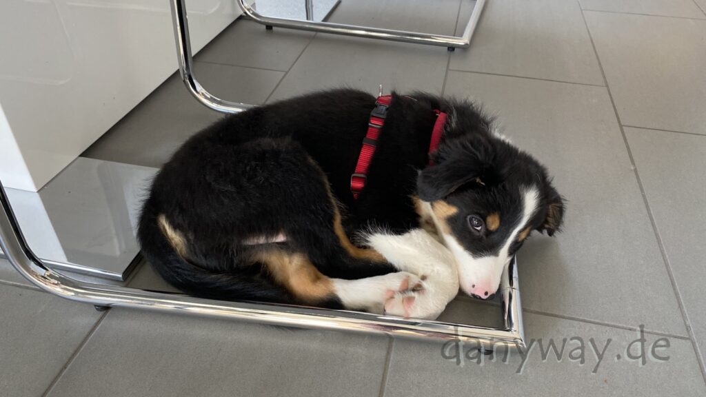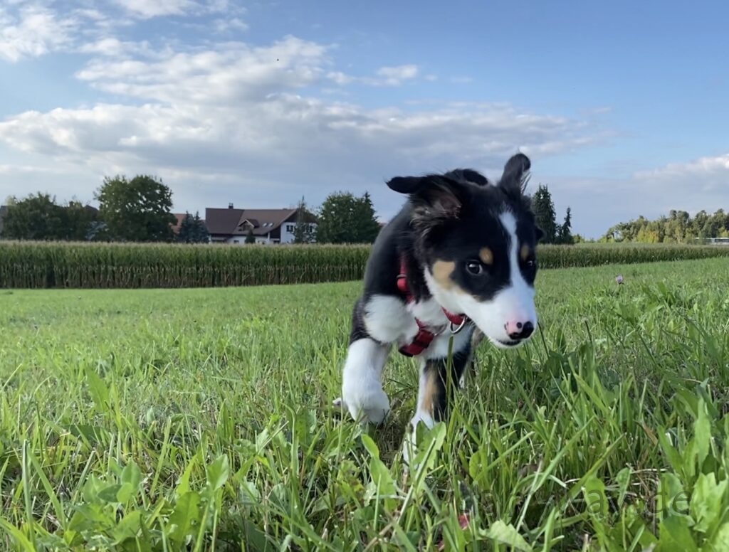Chapo war ein Glücksgriff und genau der Hund, den ich mir gewünscht hatte. Es hätte auch ein anderer sein dürfen, schwarz-weiss, ein Aussi whatever. Aber als er als letzter Rüde mit Tricolor noch zu haben war…ja..da haben wir uns alle sofort in den kleinen Welpen verliebt. Nun mussten wir noch gefühlte endlose Wochen warten, bis wir ihn abholen durften. Überbrückt die mit regelmässigen Besuchen auf dem Bauernhof.