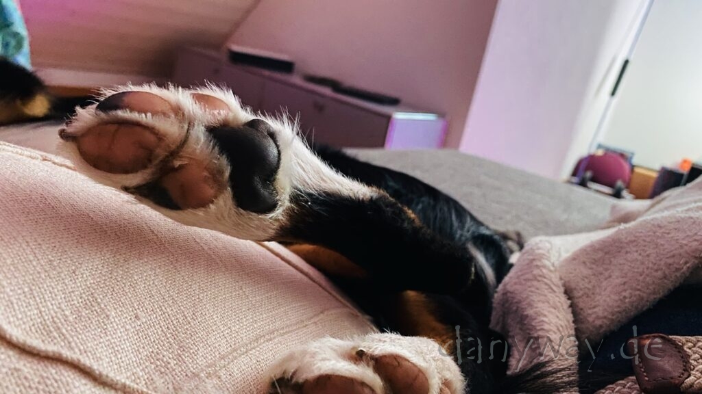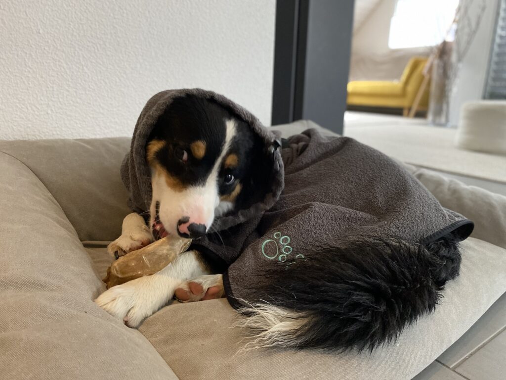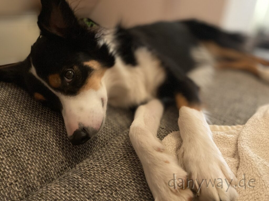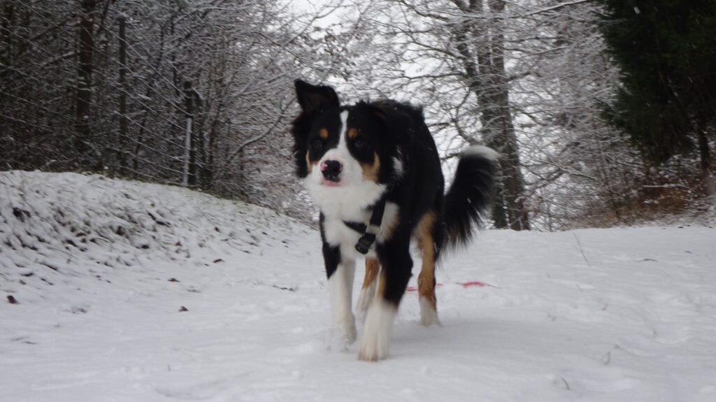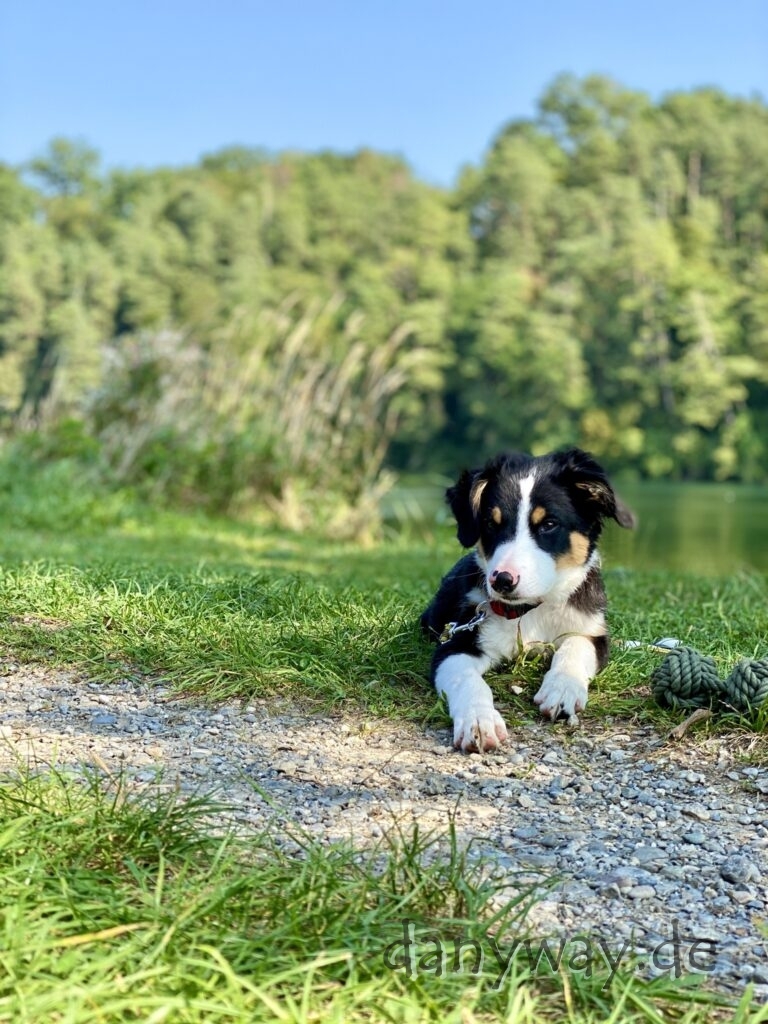 Chapo war ein Glücksgriff und genau der Hund, den ich mir gewünscht hatte. Es hätte auch ein anderer sein dürfen, schwarz-weiss, ein Aussi whatever. Aber als er als letzter Rüde mit Tricolor noch zu haben war…ja..da haben wir uns alle sofort in den kleinen Welpen verliebt. Nun mussten wir noch gefühlte endlose Wochen warten, bis wir ihn abholen durften. Überbrückt die mit regelmässigen Besuchen auf dem Bauernhof.